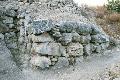 - Η πόλη περιέβαλε κεντρικό κτήριο και καταλάμβανε ολόκληρο το λόφο. Στους πρόποδες αποκαλύφθηκε κυκλώπειο τείχος με τρεις πύργους (5Χ5μ). Από πλακόστρωτους δρόμους, ένας από τους οποίους οδηγούσε στο κεντρικό κτήριο, είχαν πρόσβαση τα μεγάλα διόροφα σπίτια, τα οποία ήταν κτισμένα πάνω σε άνδηρα, ανεξάρτητα το ένα από το άλλο. Στο ισόγειο υπήρχαν αποθηκευτικοί και εργαστηριακοί χώροι, ενώ στον όροφο ήταν η κυρίως κατοίκηση.